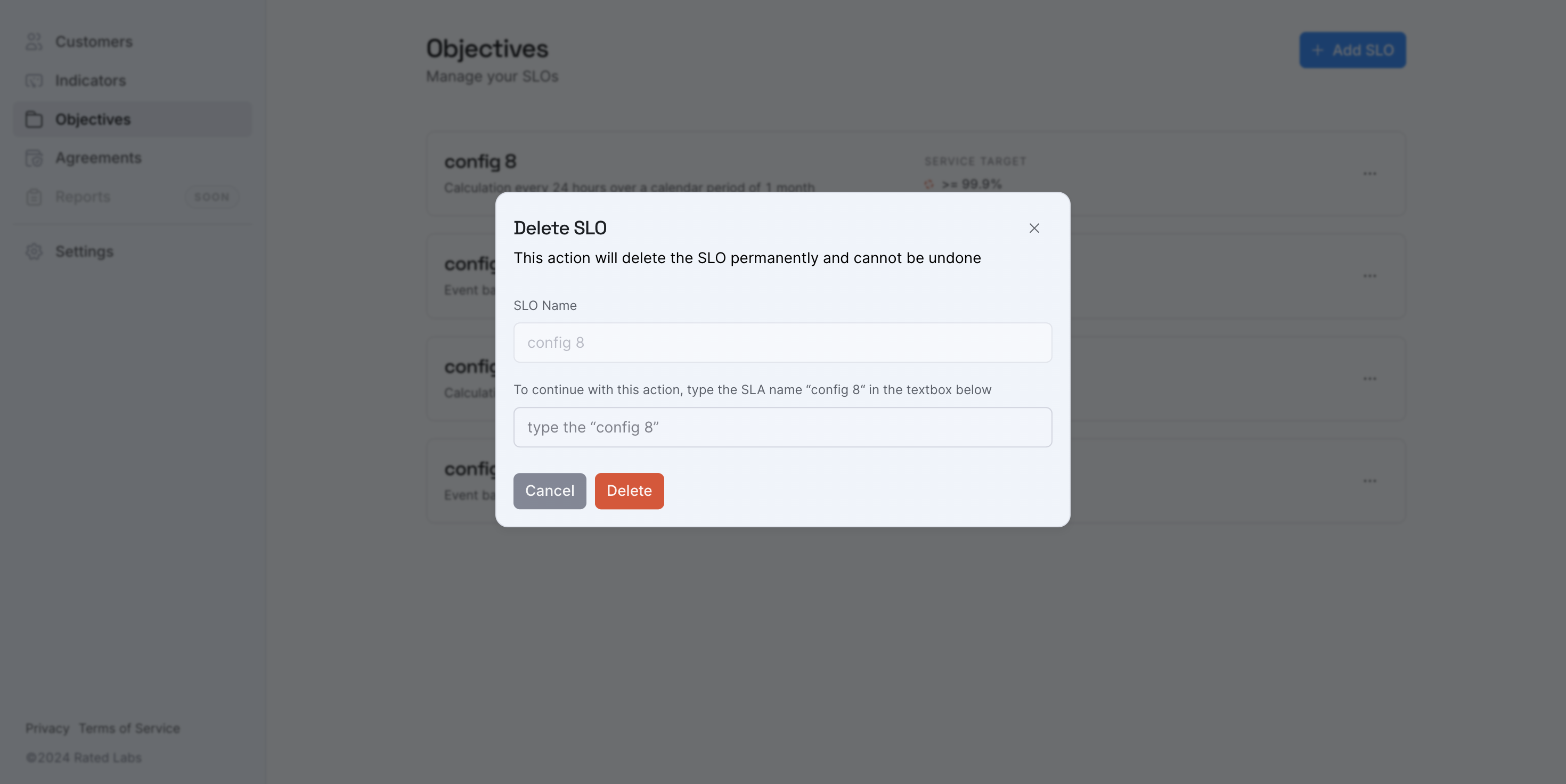 Before any SLO or SLA is permanently deleted, you'll also be prompted to confirm your decision. This added step helps prevent accidental deletions, safeguarding your service level configurations.